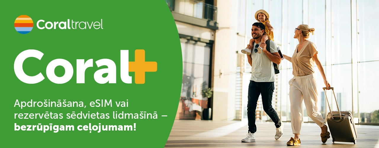 Vai atvaļinājums var būt vēl labāks? JĀ! Jo ceļošana ar CORAL PLUS nozīmē mazāk rūpju un vairāk prieka! Iedomājies: internets vienmēr pa rokai, sirdsmiers, pateicoties ceļojumu apdrošināšanai, ērti izvēlēta sēdvieta lidmašīnā. Izklausās labi? To visu Tu vari iegūt par 1€!